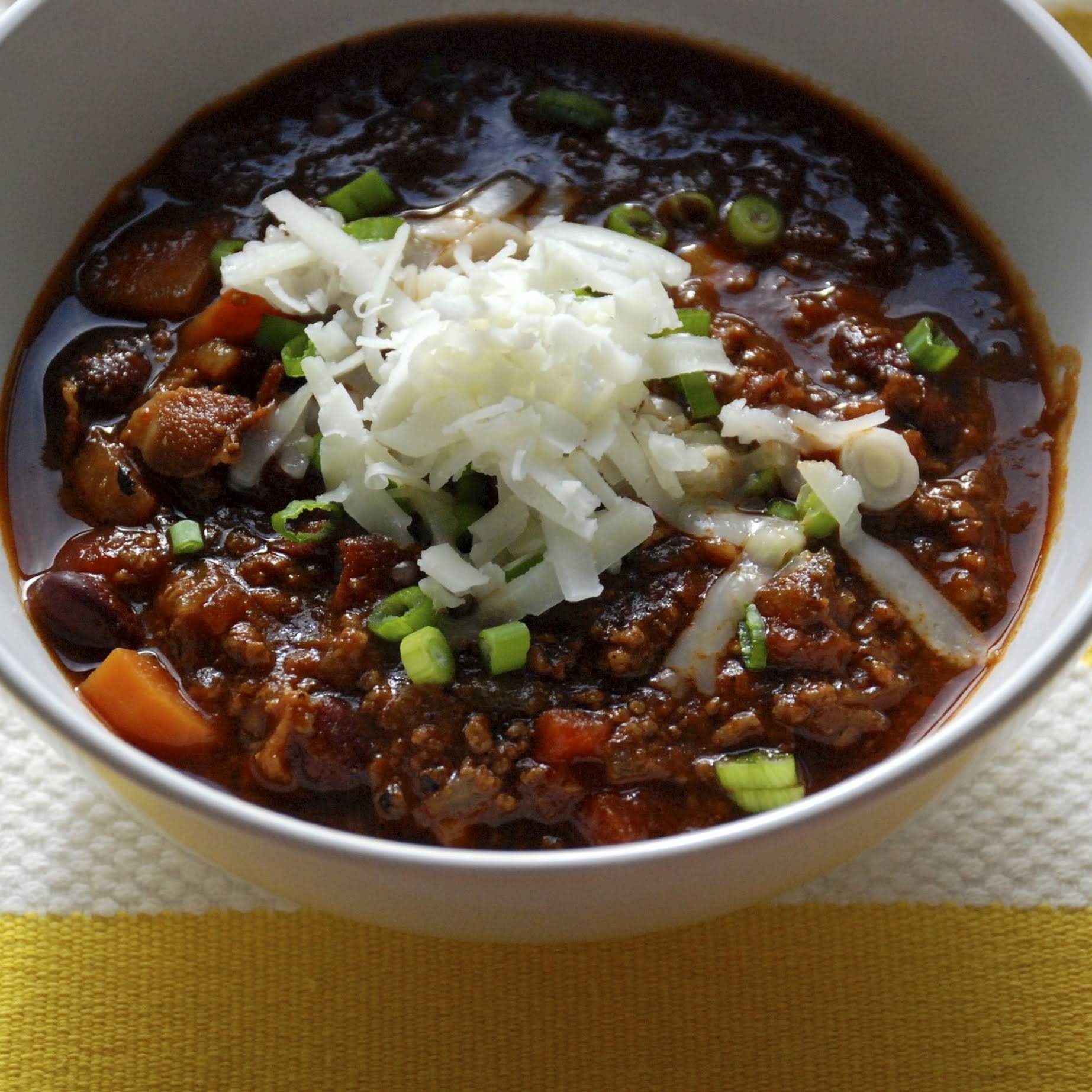 Research Chili in imitation of Garlic, Olive Oil, Applewood Smoked Bacon, White Onion, Large Carrots, Celery Ribs, lively Brown Sugar, Rye Whiskey, sports ground Beef, Lamb Leg, Cumin, Smoked Paprika, Oregano, Cayenne, Dried Mint, Nutmeg, Dried Parsley, dome Thyme, Dried Basil, Clove, Dijon Mustard, Serrano Chilies,
